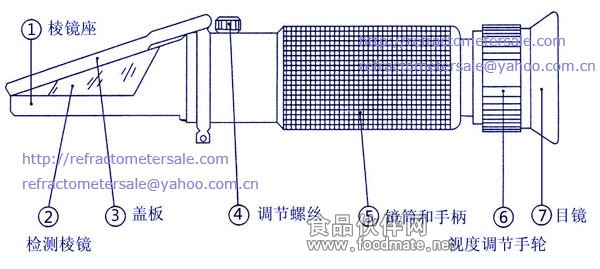 1、折射仪一个 2、说明书一份 3、螺丝刀一个 4、吸管一个   5、眼镜布一块 6、包装盒海绵